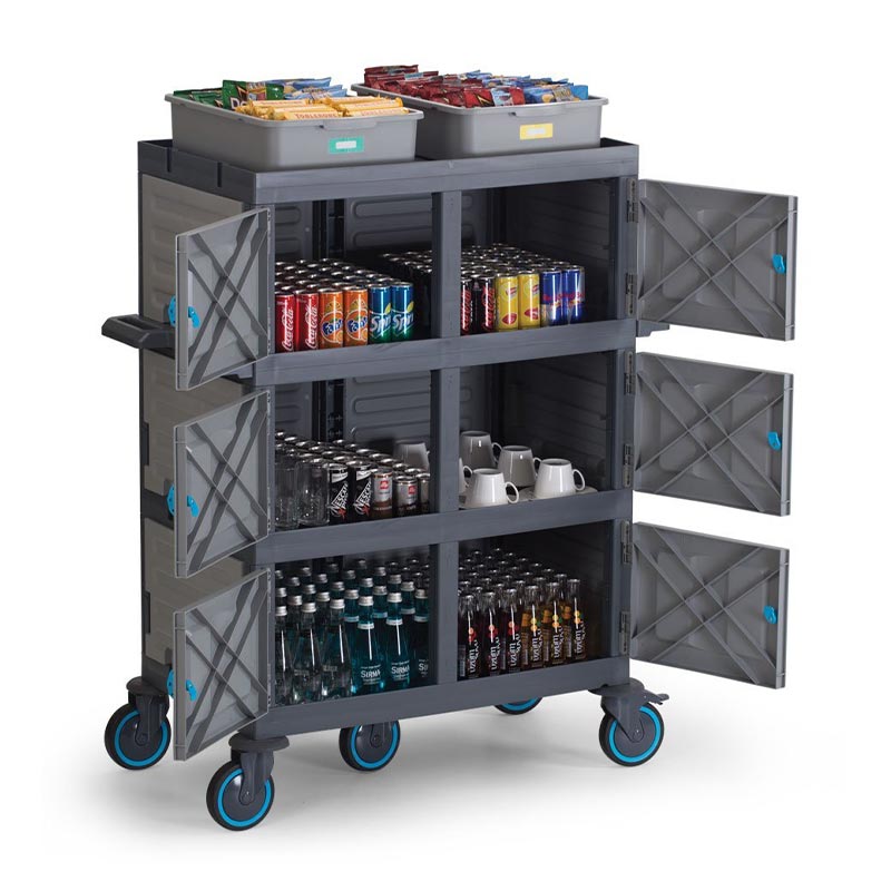 Kullanım alanları daha dar olan restaurant, otel, okul ve hastane gibi işletmelerin servis hizmetlerinde tercih edilir. Kolayca hareket edebilen sessiz, tamponlu ve frenli tekerlekleri sayesinde çarpmalara karşı dayanıklıdır. Frenli tekerlekler ile eğik düzlemlerde sabitleme imkanı sunar. Esnek özellikleriyle hızlı ve pratik bir şekilde servis yapma imkanı sağlar. Modüler ve ergonomik yapısı ile işlerinizi kolaylaştırır. Komple gövde yapısının plastik olması, iç ve dış mekan kullanımlarına olanak sağlar, su ile yapılan temizliklerden hiç bir şekilde etkilenmez ve paslanma yapmaz, ürünün hammaddesinde kimyasal maddelere ve ısıya dayanıklı Poli Propilen malzeme kullanılmıştır.