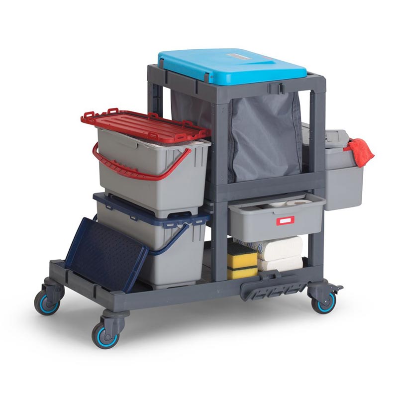 Alışveriş merkezleri, hastane, okul, yurt, fabrika, otel, rezidans gibi işletmelerin temizlik hizmetlerinde pratiklik ve standart sağlar. Kolayca hareket edebilen sessiz, tamponlu ve frenli tekerlekleri sayesinde çarpmalara karşı dayanıklıdır. Frenli tekerlekler ile eğik düzlemlerde sabitleme imkanı sunar. Esnek özellikleriyle hızlı ve pratik bir şekilde servis yapma ve atık toplama imkanı sağlar. Modüler ve ergonomik yapısı ile işlerinizi kolaylaştırır. Opsiyonel aksesuarı ile atık bölmenizi 2 x 60 lt olarak kullanma imkanı sunar. Komple gövde yapısının plastik olması, iç ve dış mekan kullanımlarına olanak sağlar, su ile yapılan temizliklerden hiç bir şekilde etkilenmez ve paslanma yapmaz, ürünün hammaddesinde kimyasal maddelere ve ısıya dayanıklı Poli Propilen malzeme kullanılmıştır. Modülün, her tarafı açıktır ve iki katlıdır. 2 x 25 lt pres kovası, pres ayağı ve dik pres ile zemin temizliğinin kolayca yapılmasına imkan sunar. Dolap bölmesinin üst kısmında  farklı renk tutma saplı, 6 lt hacimli 4 adet kova takımını ve alt dolap bölmesini gizleyen çöp kapağı kullanılmıştır. Modül, 120 lt hacminde atık toplama imkanı da kullanıcılarına ayrıca sunmaktadır. Çöp torba kilitleri sayesinde kullanım rahatlığı sağlar. Çöp kapakları üzerindeki atık sınıflandırma renk etiketleri ve görev çizelgeliği sayesinde, birbirinden farklı alanlar için sınıflandırma ve görevliyi denetim imkanı sunarak, uluslararası standartlarda hijyenik ve sağlıklı bir temizlik imkanı sunar.