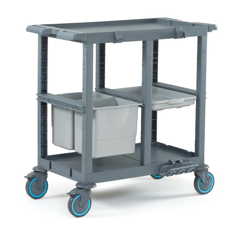 Otel, hastane, yurt, rezidans gibi işletmelerin kat hizmetlerinde pratikliği için tercih edilir. Kolayca hareket edebilen sessiz, tamponlu ve frenli tekerlekleri sayesinde çapmalara karşı dayanıklıdır. Frenli tekerlekler ile eğik düzlemlerde sabitleme imkanı sunar. Esnek özellikleriyle hızlı ve pratik bir şekilde temizlik işlerinizi yapmanızı sağlar. Uluslararası standartlardaki üretimi, modüler ve ergonomik yapısı ile işlerinizi kolaylaştırır. Komple gövde yapısının plastik olması, iç ve dış mekan kullanımlarına olanak sağlar, su ile yapılan temizliklerden hiç bir şekilde etkilenmez ve paslanma yapmaz, ürünün hammaddesinde kimyasal maddelere ve ısıya dayanıklı Poli Propilen malzeme kullanılmış ve modül içerisinde yer alan aksesuar takımı ve çift taraflı itme sapı ile kat hizmetlerinde kullanım rahatlığı sunmaktadır. Modül, her iki bölmedeki ray takımları sayesinde, içine çeşitli temizlik malzemelerinin konulabileceği 2 x 18 lt hacimli çekmece ve diğer tarafta 1 adet raf tipi tepsi muhteva etmektedir.