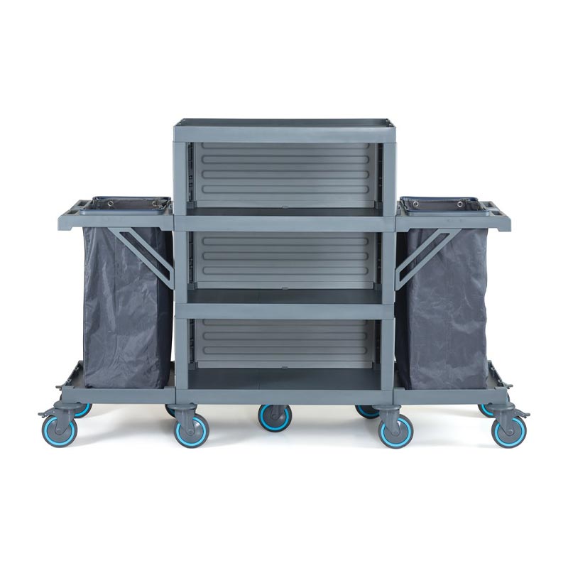 Tatil köyü, otel, hastane, yurt, rezidans gibi işletmelerin kat hizmetlerinde pratiklik ve standart sağlar.Kolayca hareket edebilen sessiz, tamponlu ve frenli tekerlekleri sayesinde çarpmalara karşı dayanıklıdır. Frenli tekerlekler ile eğik düzlemlerde sabitleme imkanı sunar. Esnek özellikleriyle hızlı ve pratik bir şekilde servis yapma imkanı sağlar. Modüler ve ergonomik yapısı ile kat hizmetlerinde büyük kolaylık sağlar. Opsiyonel aksesuarı ile çamaşır bölmenizi 2 x 60 lt olarak kullanma imkanı sunar. Komple gövde yapısının plastik olması, iç ve dış mekan kullanımlarına olanak sağlar, su ile yapılan temizliklerden hiç bir şekilde etkilenmez ve paslanma yapmaz, ürünün hammaddesinde kimyasal maddelere ve ısıya dayanıklı Poli Propilen malzeme kullanılmıştır. Modülün ön tarafının açık, diğer üç tarafının kapalı olması estetik açıdan farklılık arz etmektedir. Modülün, üç katlı ve dört raflı olması kullanıcılarına daha rahat iş yapma ve servis olanağı sunmaktadır. Ayrıca modül, kullanıcılarına 2 x 120 lt çamaşır toplama imkanı sunmaktadır. Her iki taraftaki itme sapları ve çöp torba kilitleri kullanım rahatlığı sağlar.