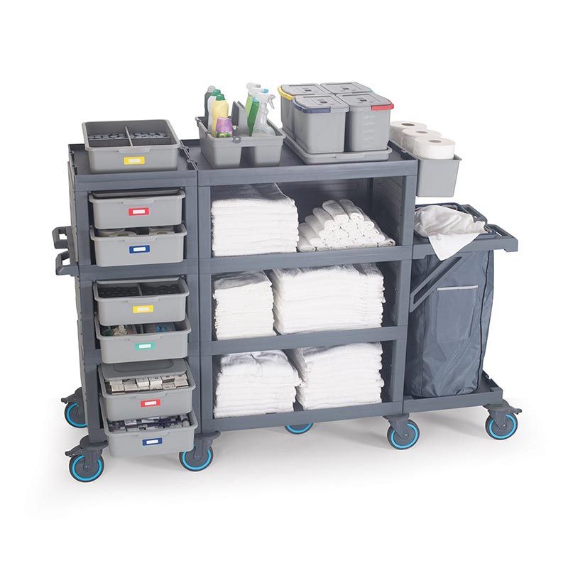Tatil köyü, otel, hastane, yurt, rezidans gibi işletmelerin kat hizmetlerinde pratiklik ve standart sağlar. Kolayca hareket edebilen sessiz, tamponlu ve frenli tekerlekleri sayesinde çapmalara karşı dayanıklıdır. Frenli tekerlekler ile eğik düzlemlerde sabitleme imkanı sunar. Uluslararası standartlardaki üretimi, modüler ve ergonomik yapısı ile işlerinizi kolaylaştırır. Opsiyonel aksesuarı ile çamaşır bölmenizi 2 x 60 lt olarak kullanma imkanı sunar. Komple gövde yapısının plastik olması, iç ve dış mekan kullanımlarına olanak sağlar, su ile yapılan temizliklerden hiç bir şekilde etkilenmez ve paslanma yapmaz, ürünün hammaddesinde kimyasal maddelere ve ısıya dayanıklı Poli Propilen malzeme kullanılmıştır.