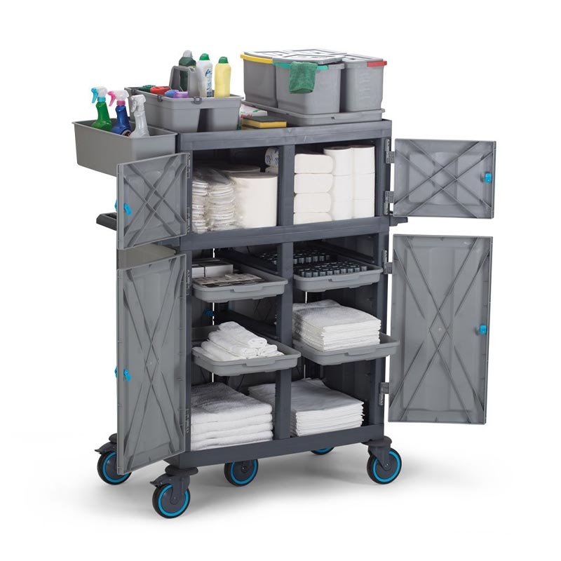 Tatil köyü, otel, hastane, yurt, rezidans gibi işletmelerin kat hizmetlerinde pratiklik ve standart sağlar. Kolayca hareket edebilen sessiz, tamponlu ve frenli tekerlekleri sayesinde çapmalara karşı dayanıklıdır. Frenli tekerlekler ile eğik düzlemlerde sabitleme imkanı sunar. Uluslararası standartlardaki üretimi, modüler ve ergonomik yapısı ile işlerinizi kolaylaştırır. Opsiyonel aksesuarı ile çamaşır bölmenizi 2 x 60 lt olarak kullanma imkanı sunar. Komple gövde yapısının plastik olması, iç ve dış mekan kullanımlarına olanak sağlar, su ile yapılan temizliklerden hiç bir şekilde etkilenmez ve paslanma yapmaz, ürünün hammaddesinde kimyasal maddelere ve ısıya dayanıklı Poli Propilen malzeme kullanılmıştır.