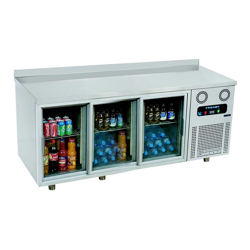 Frenox CGN3-SL Horizontal Type Sliding Glass Door Undercounter Refrigerator, 3 Doors