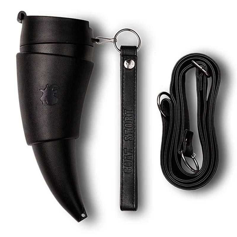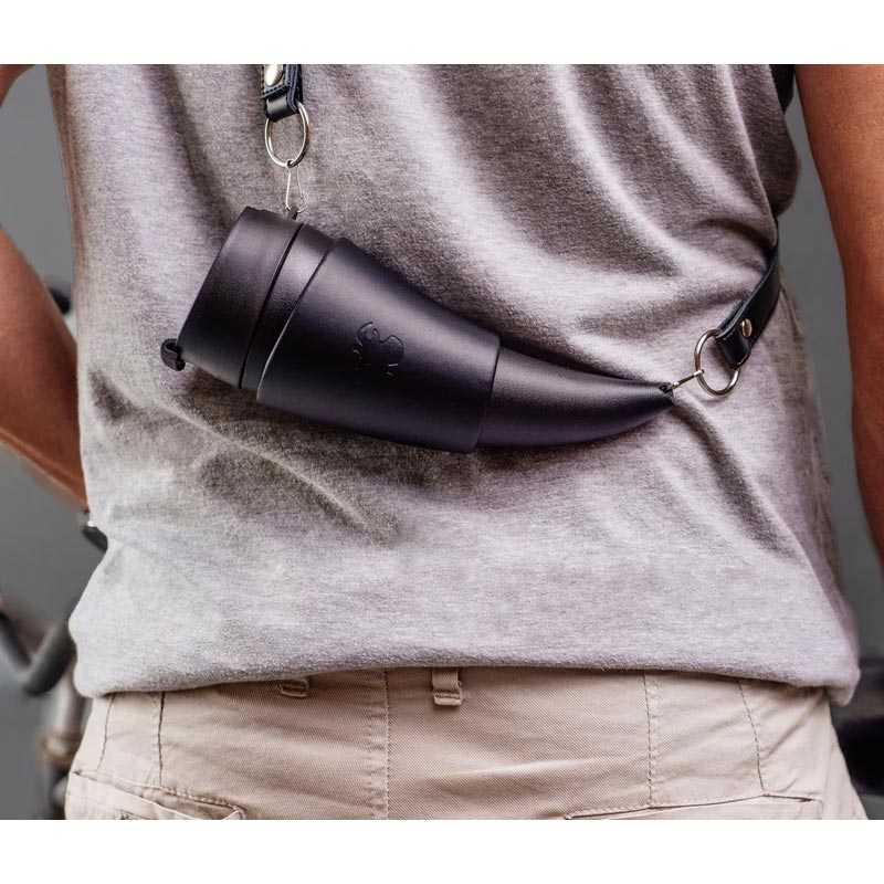 Kahve içme tarzınıza stil katan, boynuz şeklindeki eşsiz bir kahve mug. Kolay taşıma için iki suni deri kayış seti ve Mug'nuz için bir standa dönüşen özel bir tutucu ile birlikte gelir.