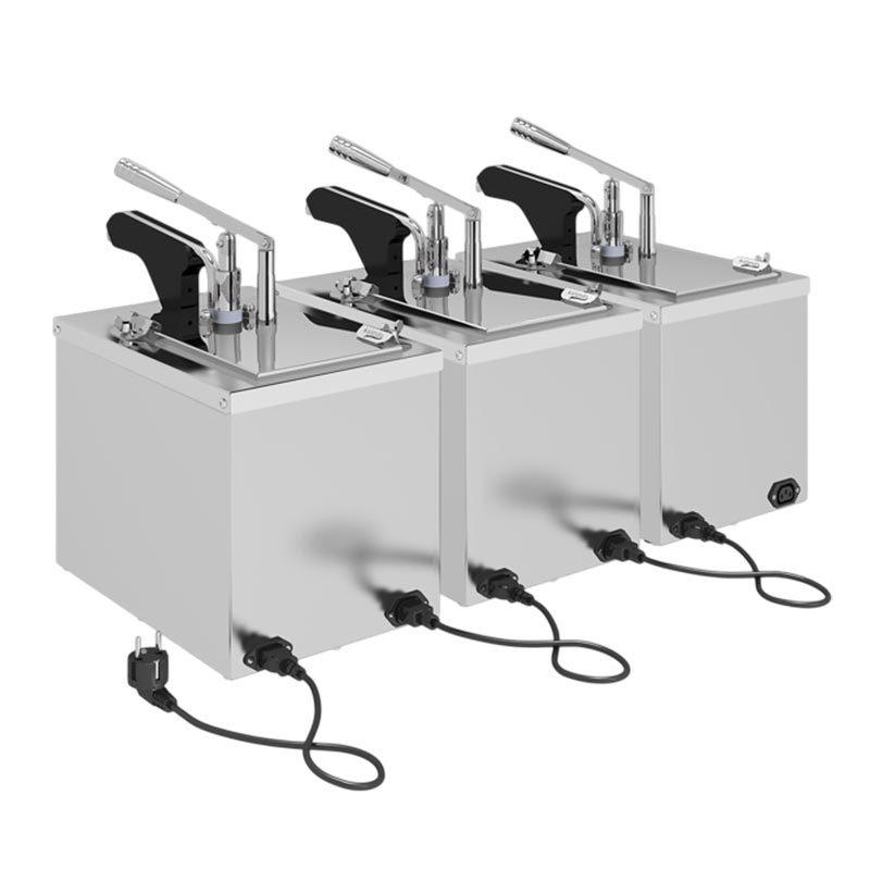 Isıtmalı benmari dispenseri istenen sıcaklığa hızla ulaşır. Çeşni dağıtıcı 0 ila 90 °C arasında sıcaklık seviyelerinde çalışır. Optimum ısı transferi için, dağıtıcı önce bir su banyosunu ısıtır ve ardından sıcaklığı sosun bulunduğu kaba iletir. Bu, eşit ısı dağılımı sağlar ve sos kabının değiştirilmesini ve temizlenmesini kolaylaştırma avantajına sahiptir.
