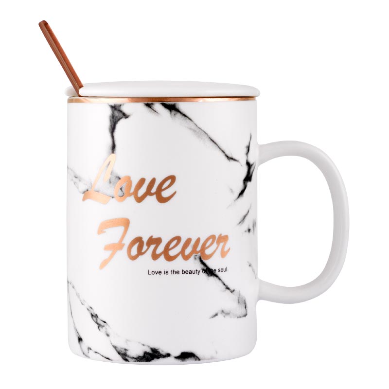 Keenmax Кружка с ложкой с мраморным рисунком, белый