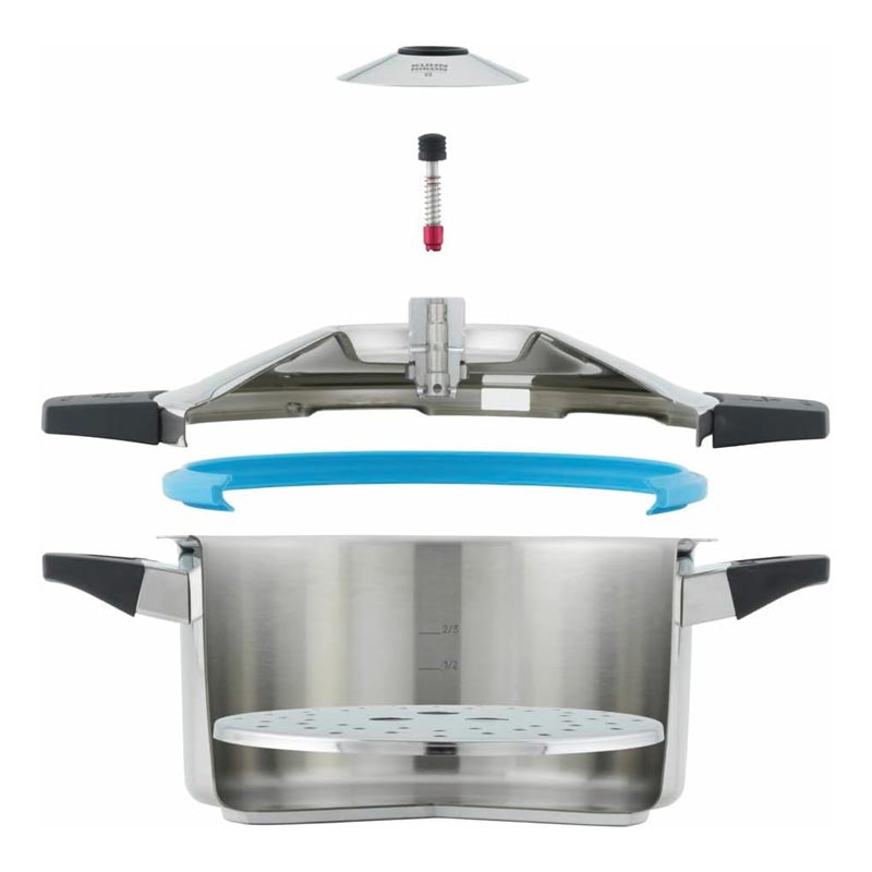 Tavadaki iç basıncı tam olarak yansıtan süngü kilitli gelişmiş bir yaylı valf ile donatılmıştır (hassas pişirme sürelerini mümkün kılar / taşma riski önemli ölçüde azaltılır)