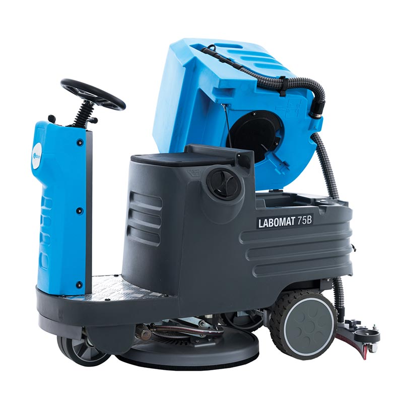 Labomat 75B ürünü genel olarak kullanılan arkadan itmeli modellere mükemmel bir alternatif bir model olup, 75 litre tank kapasitesi ve 53 cm çalışma genişliğine sahiptir. Arkadan itmeli ürünlerdeki gibi 2 adet 12 Voltluk akü ile 1.400 – 3.000 metrekare aralığındaki alanların temizliğinde kullanılmaktadır. Makinenin çalışmadığı zamanlarda otomatik olarak fırçanın dönmesini ve su akışını durduran sistemi ve tüketim optimizasyonu yapması ürünün öne çıkan özelliklerindendir.