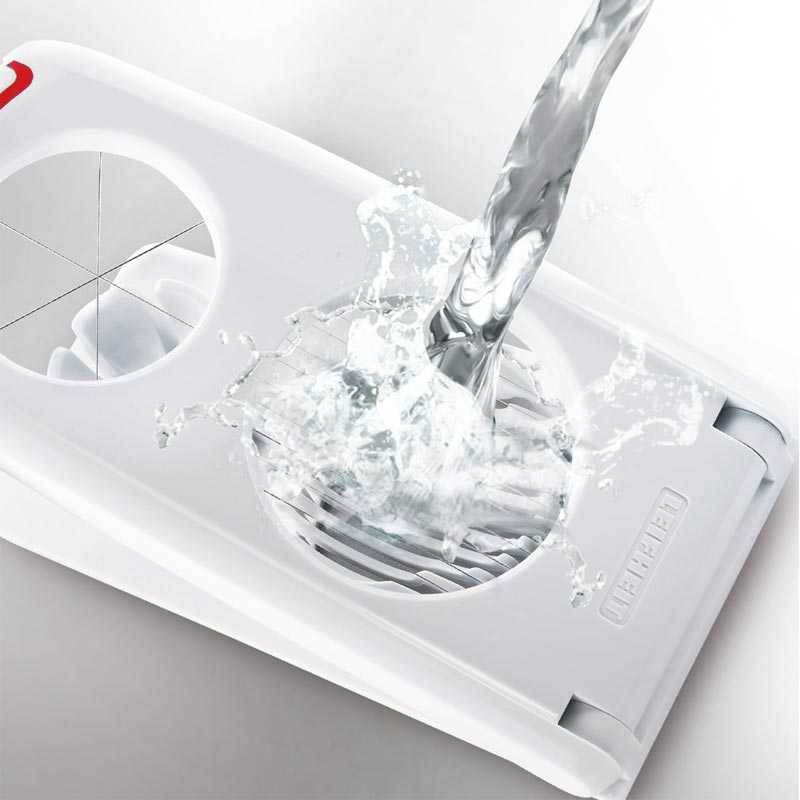 • Paslanmaz çelikten dayanıklı kesme teli, her dilimin düzgün ve kesin kesmesini sağlar – yumurta, mantar, kivi veya patates haşlanmış olsun. Tüm dilimleri aynı kalınlık ve düzenli pişirmek çünkü malzemeler, işleme için iştah açıcı hazırlanabilir. Comfort Line Combi yumurta kesici temizlenmesi kolaydır. Şık kırmızı bir kaymaz uygulama güvenli ve hoş bir çalışma sağlar.