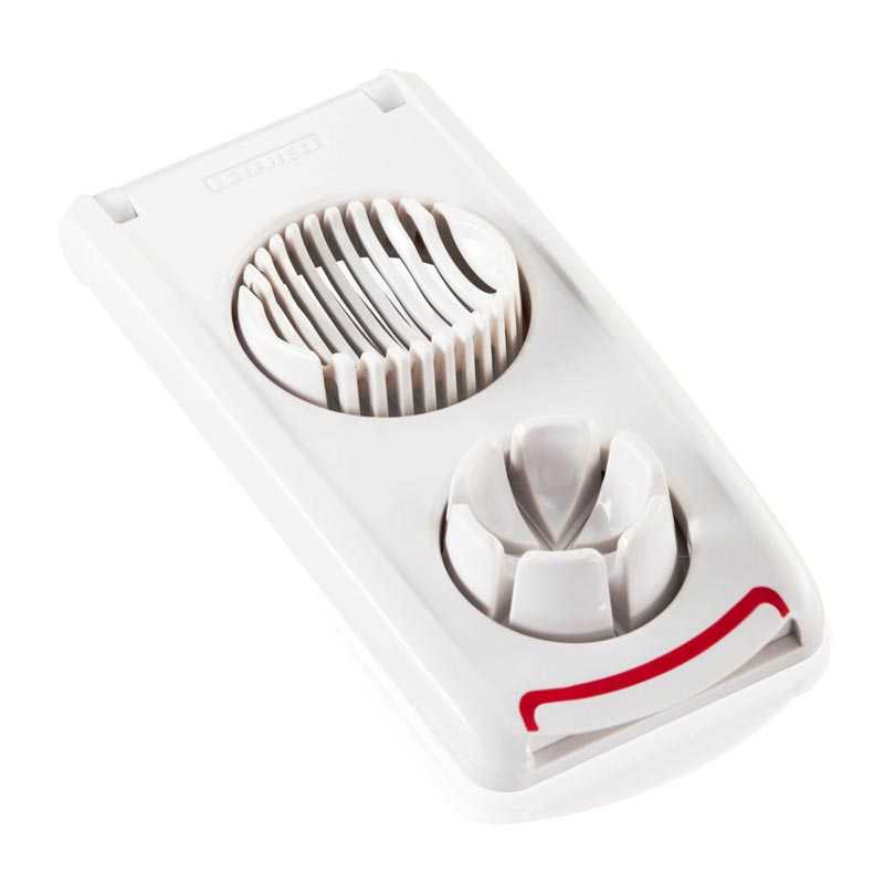 Paslanmaz çelikten dayanıklı kesme teli, her dilimin düzgün ve kesin kesmesini sağlar – yumurta, mantar, kivi veya patates haşlanmış olsun. Tüm dilimleri aynı kalınlık ve düzenli pişirmek çünkü malzemeler, işleme için iştah açıcı hazırlanabilir. Comfort Line Combi yumurta kesici temizlenmesi kolaydır. Şık kırmızı bir kaymaz uygulama güvenli ve hoş bir çalışma sağlar.