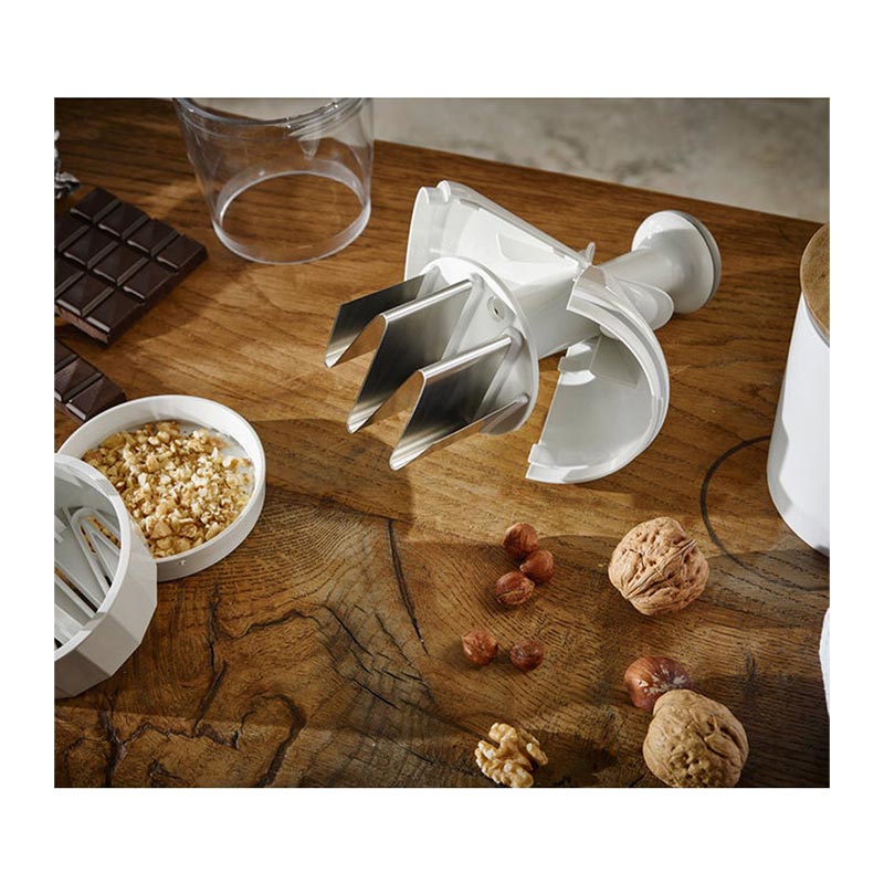 Kolayca kavranan düğme, soğanları, sarımsakları, sebzeleri, kuruyemişleri ve çikolatayı zahmetsizce ve eşit şekilde doğrayan ekstra keskin paslanmaz çelik bıçağı harekete geçirir.