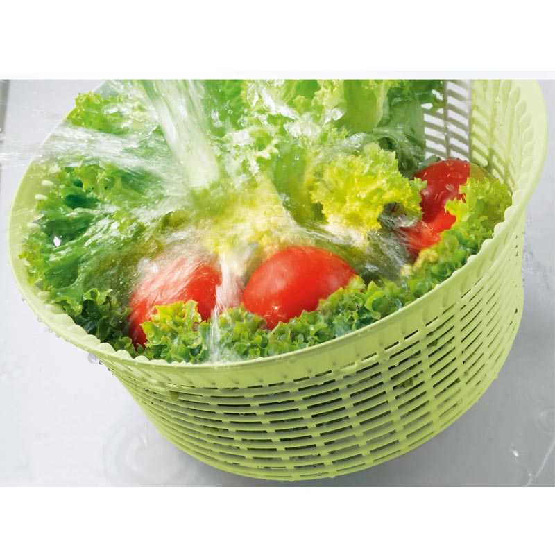 Modern bir mutfak yardımı aynı anda çeşitli fonksiyonları yerine getirdiğinde, güzel, Leifheit salata kurutucu gerekirse üç kez kullanılır: özel bir kurutma mekanizması salata özellikle etkili ile kurur. Bu iyi şekilli salata kâse olarak kullanılabilir-ortasında keskin diken olmadan. Örneğin, dışarı dökme ve makarna drenaj için uygun olan bir elek vardır. Benzersiz kablo mekanizması, elek sol/sağ kurutma ve özenle verimli bir şekilde salata kurutur. Aşağıdaki temizlik için iplik mekanizması alınabilir. Bu temiz bir hijyen avantajı, çünkü kir parçacıkları mekanizmanın altına yerleşebilir.