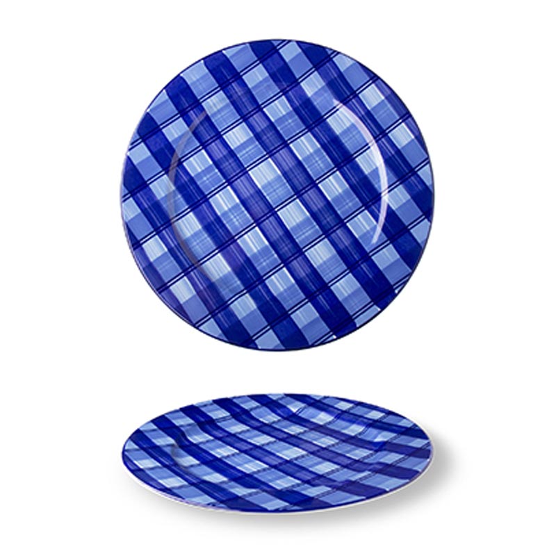 Lilien Indigo Tuval Desenli Düz Tabak, 20 cm, Mavi