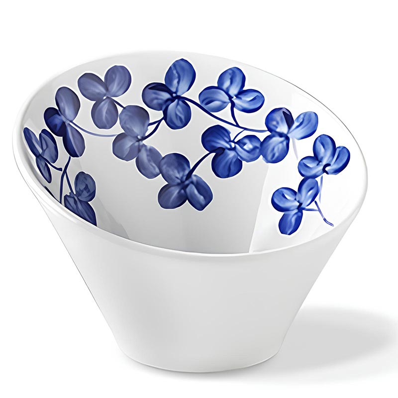 Lilien Indigo Yonca Desenli Eğimli Kase, 14 cm, Mavi