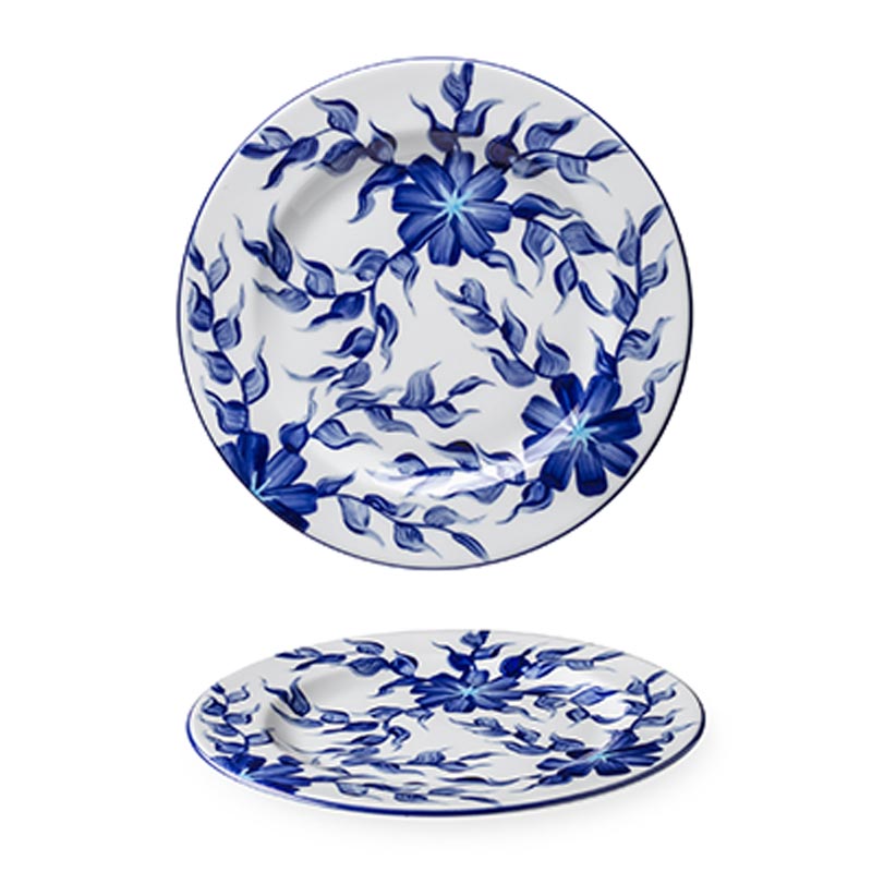 Lilien إنديجو طبق مسطح منقوش بالزهور، 20 سم، أزرق