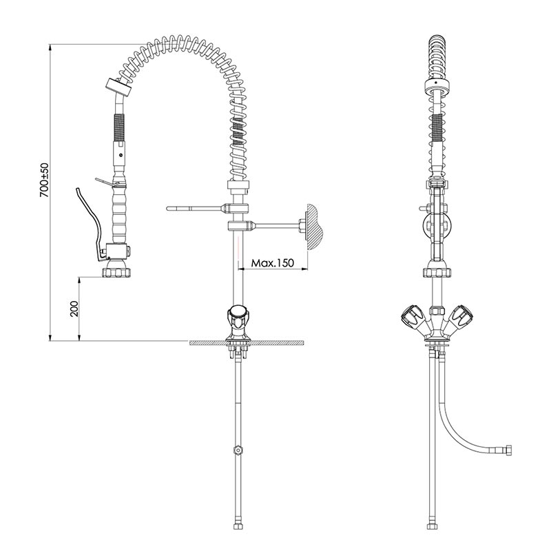 Ön yıkama duşunun su basıncı şebeke basıncına bağlıdır.Su ve deterjan tasarrufu sağlar.Kolay monte edilir.Spiral örgülü hortum 100 derece sıcaklığa dayanıklıdır.Musluk kafaları metal.