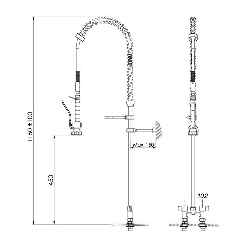 Ön yıkama duşunun su basıncı şebeke basıncına bağlıdır.Su ve deterjan tasarrufu sağlar.Kolay monte edilir.Spiral örgülü hortum 100 derece sıcaklığa dayanıklıdır.Musluk kafaları metal.