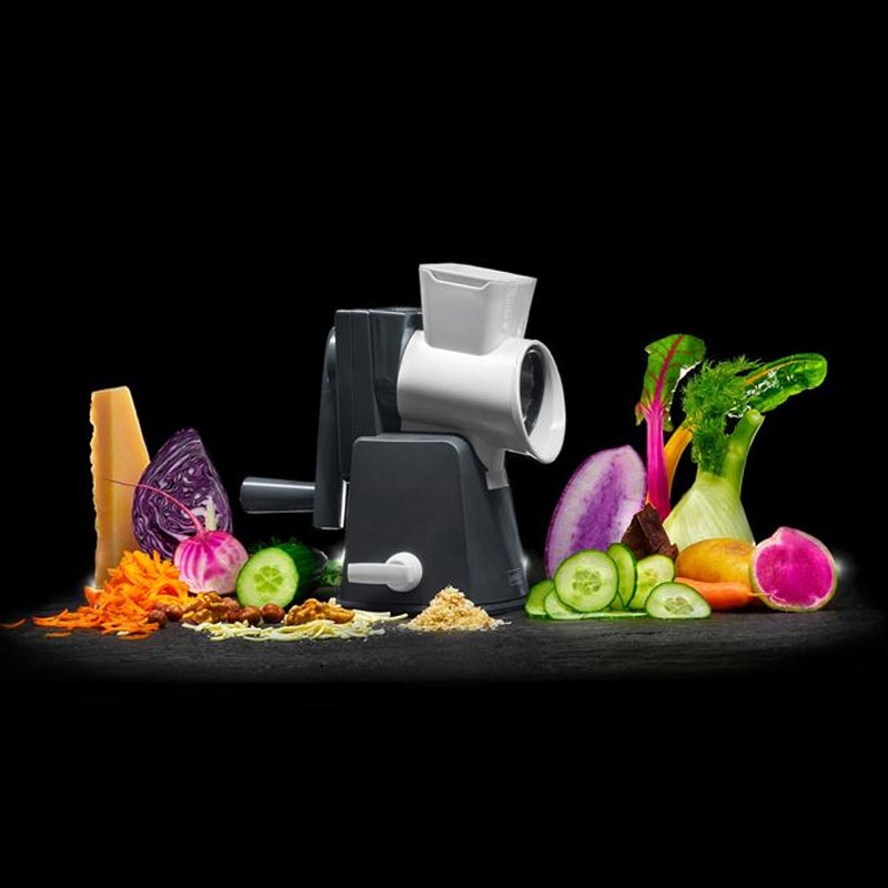 Keskin bıçaklara sahip olan Kollu Tambur Rende ile havuç, biber, salatalık, turp gibi ince dilimlenmiş veya rendelenmiş sebzelerle, lezzetli bir salata yapabilirsiniz. Ya da sağlıklı sebze cipslerine ne dersiniz? Tatlı patates, pancar ve kabakları dilimler halinde kesebilir, fırında biraz yağ ve baharatla çıtır sebze cipsleri elde edebilirsiniz. Pizza, güveç, graten veya makarnanızı çaba harcamadan rendelenmiş peynirle zenginleştirebilirsiniz.