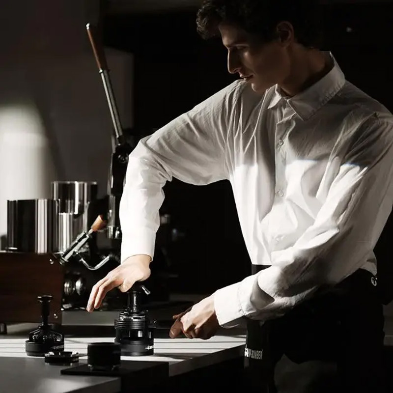 • Orijinal 4 Yaylı Denge Sistemi: Gövde içerisindeki dörtlü yay mekanizması, tamperin aşağı inerken asla eğilmemesini sağlar. Kahve yatağınız her zaman portafiltreye tam paralel ve düz olur.