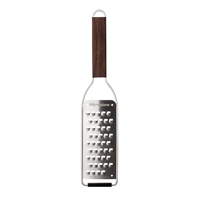 Uzun ömürlü, ultra keskin, paslanmaz çelik bıçak foto kesim teknolojiisyleABD'de üretilmiştir. Master Serisi tarz ve verimliliğin mükemmel kombinasyonuna sahiptir. ABD, Kentucky'den gelen zarif ve şık ceviz ahşap sap, ahşap atölyesinden gelip mutfağa getirilen Mikroplan rendelerin kökenini hatırlatıyor.