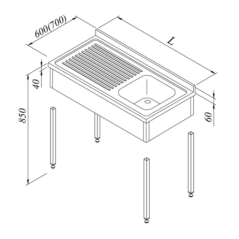 Üst tablaya 1 adet 400 *400 *250 mm ölçülü pres baskı monoblok evye gözü dikiş kaynak yöntemiyle kaynaklı