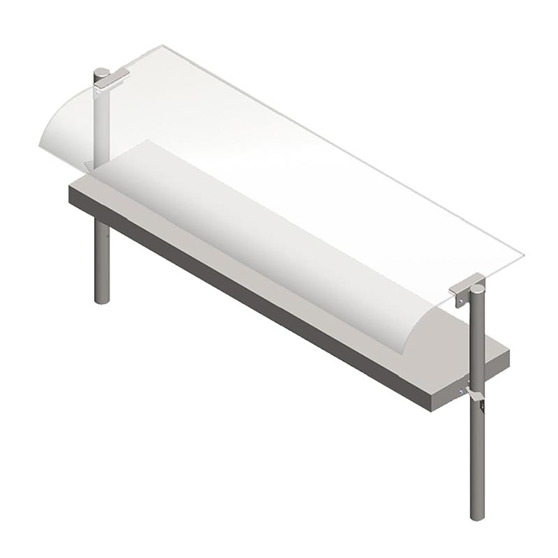 Paslanmaz çelik gövdeli * Cam öksürük perdeli * Paslanmaz çelik borudan üst raf ayaklı