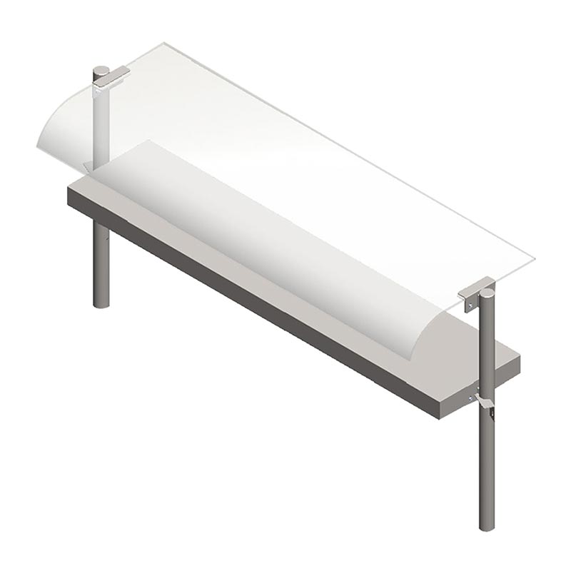 Paslanmaz çelik gövdeli * Cam öksürük perdeli * Paslanmaz çelik borudan üst raf ayaklı