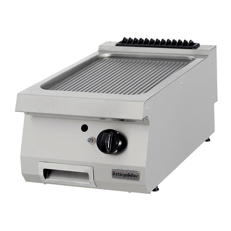 • Pişirme yüzeyinin altında paslanmaz çelikten yapılmış brülörler mevcuttur. Termostatik gaz valfi ile kontrol edilen pişirme yüzey sıcaklığı 100-300 °C arasında ayarlanabilmektedir. Bu da optimum gaz tüketimi ve yüzeyde istenilen sıcaklık dağılımını sağlamaktadır. • Güveliği arttırmak için piezo çakmaklı ateşleme sistemi mevcuttur.
