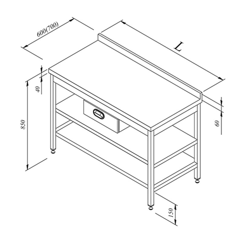 Öztiryakiler Ara Raflı Tek Çekmeceli Sırtlı Çalışma Tezgahı, 120x70 cm
