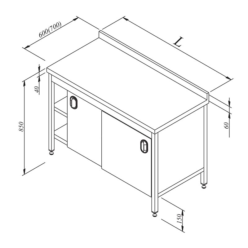 • Paslanmaz çelik taban, ara raflı ve sürgü kapılı