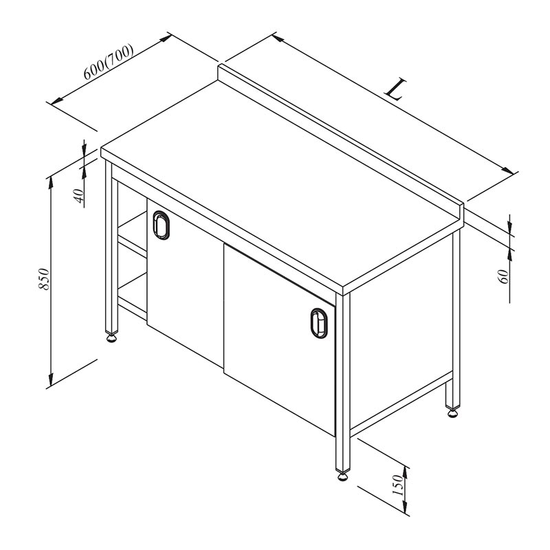 • Paslanmaz çelik taban, ara raflı ve sürgü kapılı