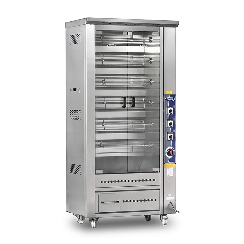 Pimak Lavtaşlı Çift Vitrinli Piliç Çevirme Makinesi, 60 Piliç Kapasiteli, Doğalgazlı