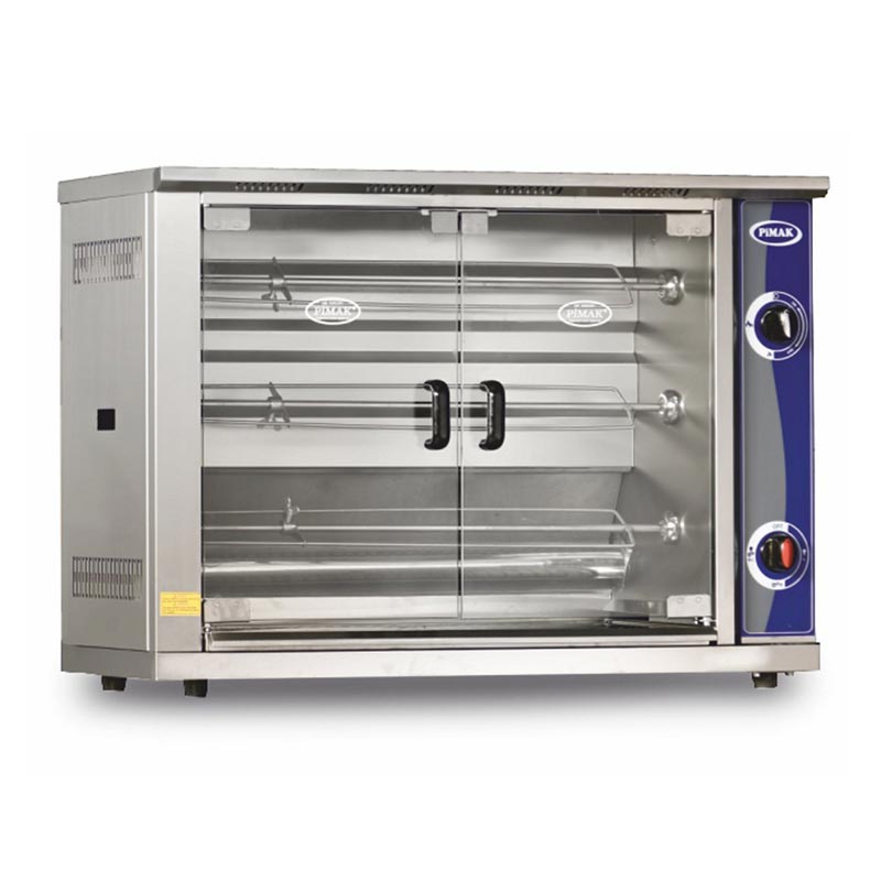 Pimak Double Showcase Chicken Rotisserie Machine with Lavtaş, 48 Chicken Capacity, Natural Gas
