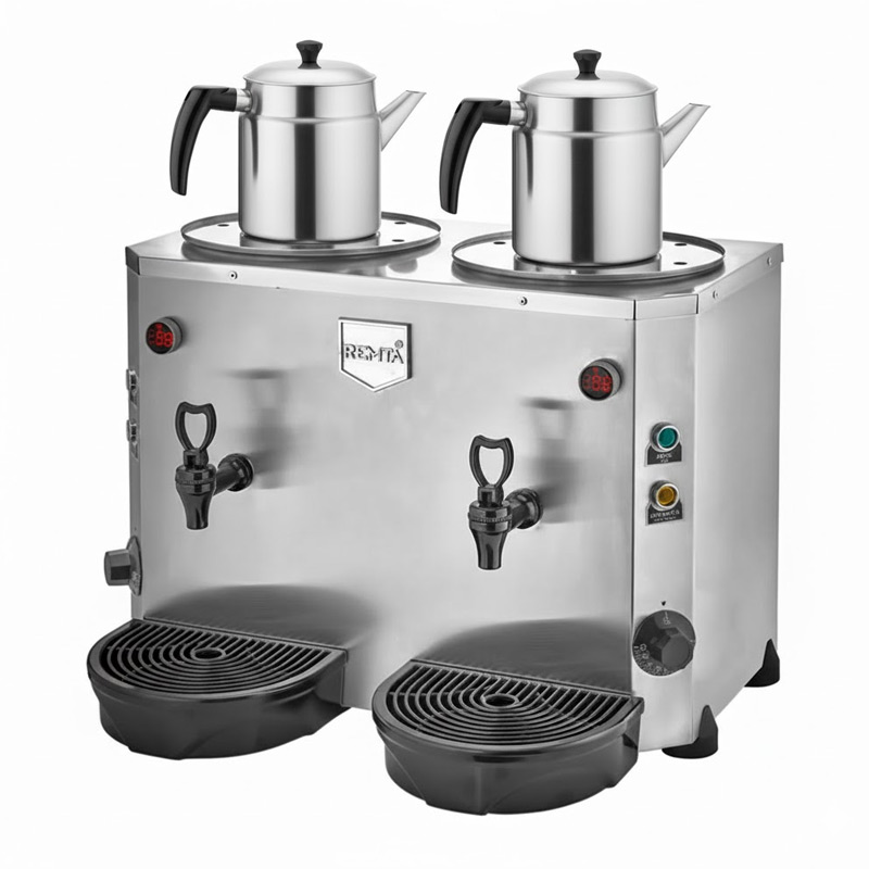 Özel tasarımı ile, ofis ve iş yerlerinde kullanıma uygun olarak üretilen, remta jumbo model elektrikli çay kazanı 9+9 litre birbirinden bağımsız çalışabilen iki ayrı kazana sahiptir ve herbir kazan üzerine 1 adet demlik konulacak şekilde üretilmiş olup demlik ürün koli içeriğine dahildir. Cihazın iç ve dış kazan arası çift kat ısı yalıtımlı olup soğumayı geciktirerek elektrik tasarrufu sağlar.