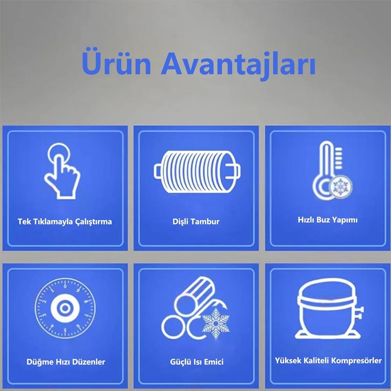 Yüksek verimli motor 24 saatte 120 kg tıraş buz üretebilir.