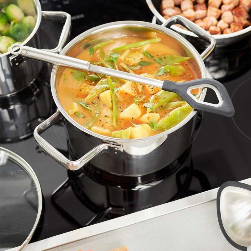 Yeni yemek kaşığı ile tencere ve tavalara karşı çizilmeye karşı hassas dokunuş sağlar.