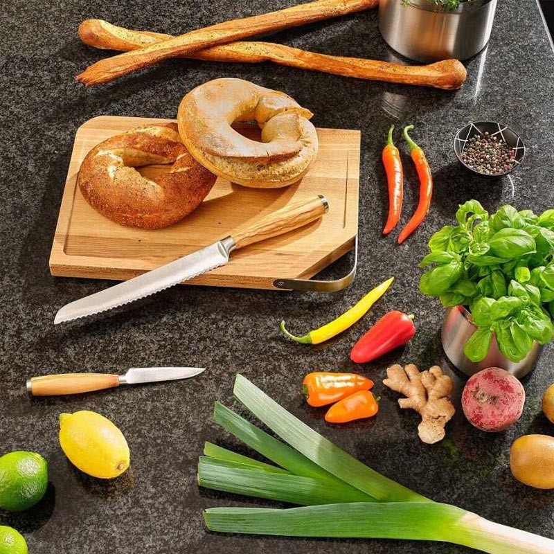 Ekmek bıçağı özellikle ekmek, kek ve çörek baget kesmek için uygundur. Çift taraflı tırtıklı kenar sayesinde, sert kabuklu ekmeklerde de hassas ve düz kesim mümkündür.