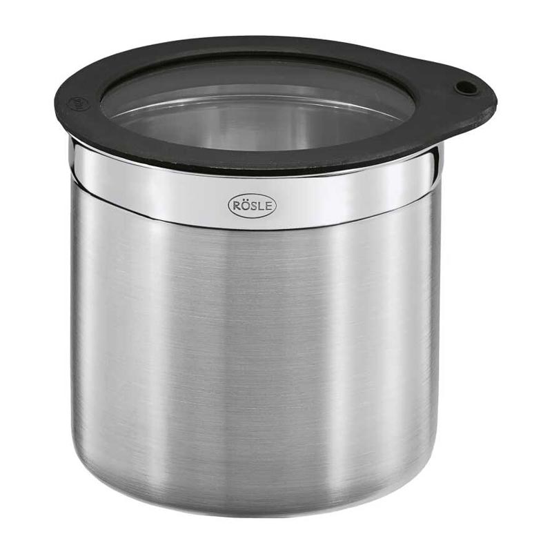 Rösle 16557 وعاء تخزين من الفولاذ المقاوم للصدأ بغطاء من السيليكون والزجاج، 1.4 لتر