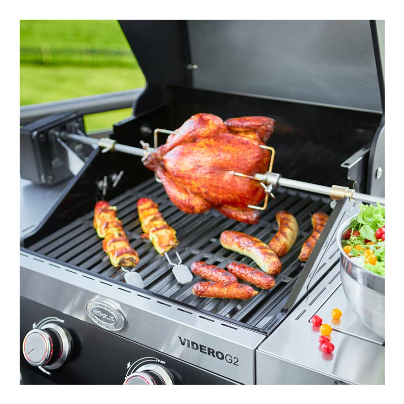 • RÖSLE Premium döner şiş: RÖSLE gazlı mangal istasyonları VIDERO G4/G4-S/G6-S ve Magnum G4/PRO G4/PRO G4-S için yüksek kaliteli ızgara şişi - 10 kg'a kadar taşıma kapasitesi - mangal severler için vazgeçilmez barbekü aksesuarı