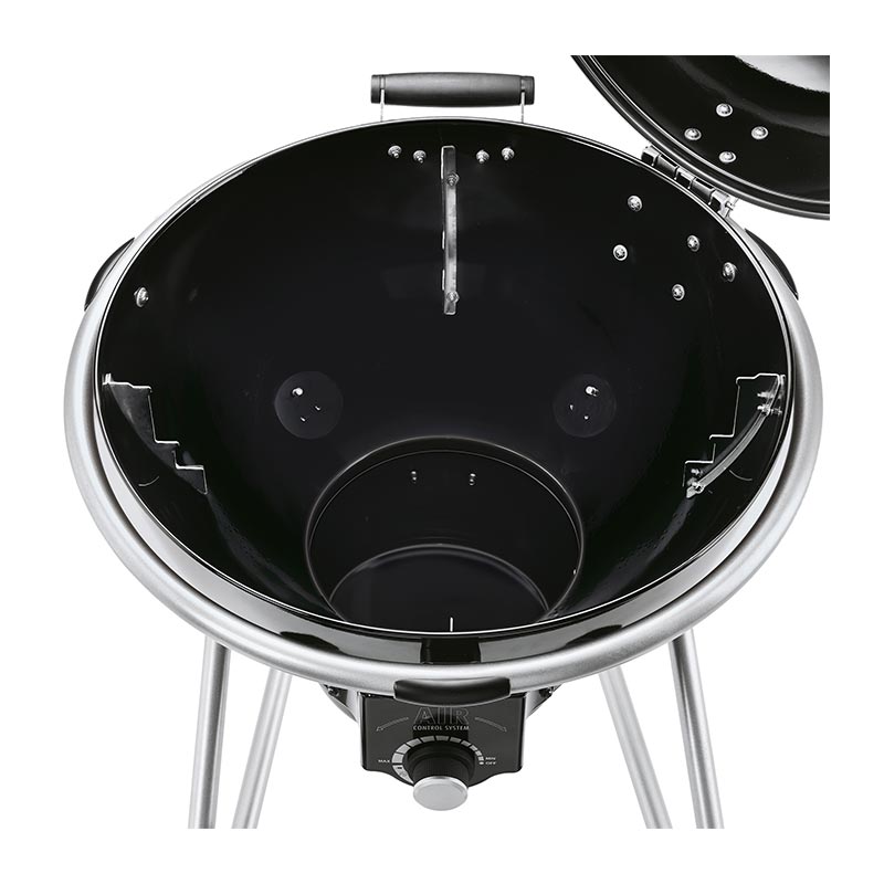 Rösle'den kömürlü su ısıtıcısı ızgarasının yenilikçi tasarımı: Yeni HAVA Kontrol Sistemi ile hava beslemesi daha da iyi kontrol edilir. Ayrıca bir düğmeye basarak kül kabını kolayca çıkarabilirsiniz. F60 Air kettle ızgarası, benzer ızgaralara göre %15 daha etkili ızgara yüzeyi ve yüksek kaliteli malzemesiyle de etkileyicidir. Yüksek kaliteli çelikten yapılmış top tamamen porselen emayedir. 84 cm'lik konforlu çalışma yüksekliğinin yanı sıra yüksek kapak ve katlanabilir paslanmaz çelik ızgara, bu ızgarayı gerçek birçok yönlü yapar.