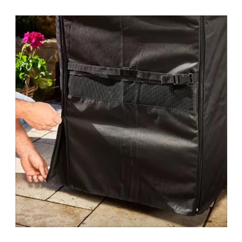 Hafif ve hava koşullarına dayanıklı başlık, hava, UV radyasyonu ve polenlere karşı güvenilir bir koruma sağlar. Kapak, Rösle gazlı ızgara Barbekü istasyonunuz VIDERO G4/G4-S için optimum koruma sağlar. Boyut olarak ayarlanabilir ve fermuar sayesinde katlanmış veya açılmamış yan sehpalar için alan sunar. Ayarlanabilir tokalar, kaputu tam olarak ızgaraya sabitler ve yan ekler ile optimum hava sirkülasyonu için alan sunar.