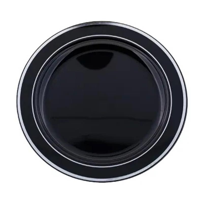 Rubikap Gümüş Detaylı Plastik Düz Tabak, 26 cm, Siyah