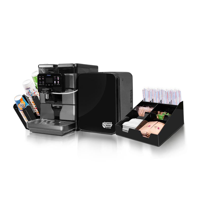 Saeco Area OTC Nespresso Compatible Capsule Coffee Machine + Coffee Tech Milk Cooler + Cup Holder Stand + Napkin and Stirrer Stand