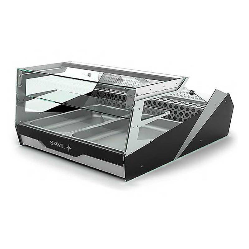 Gıda alanında serinliği sağlamak ve ürünü kurutmadan sergilemek için soğuk bir tepsi ve statik bir buharlaştırıcı ile donatılmıştır.
