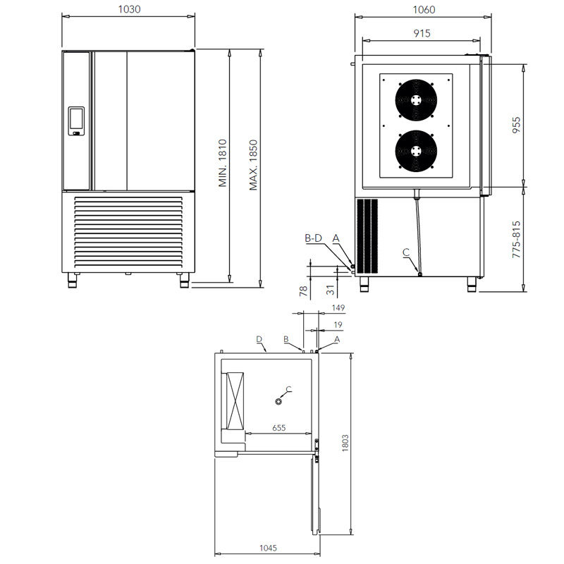 • 50 kg şok soğutma kapasitesi (+90°C -> +3°C, 90 dakika)