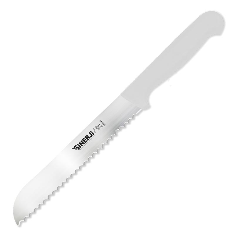 Sinerji Silver Plastic Handle Medium Tooth Bread Knife, 21 cm, White