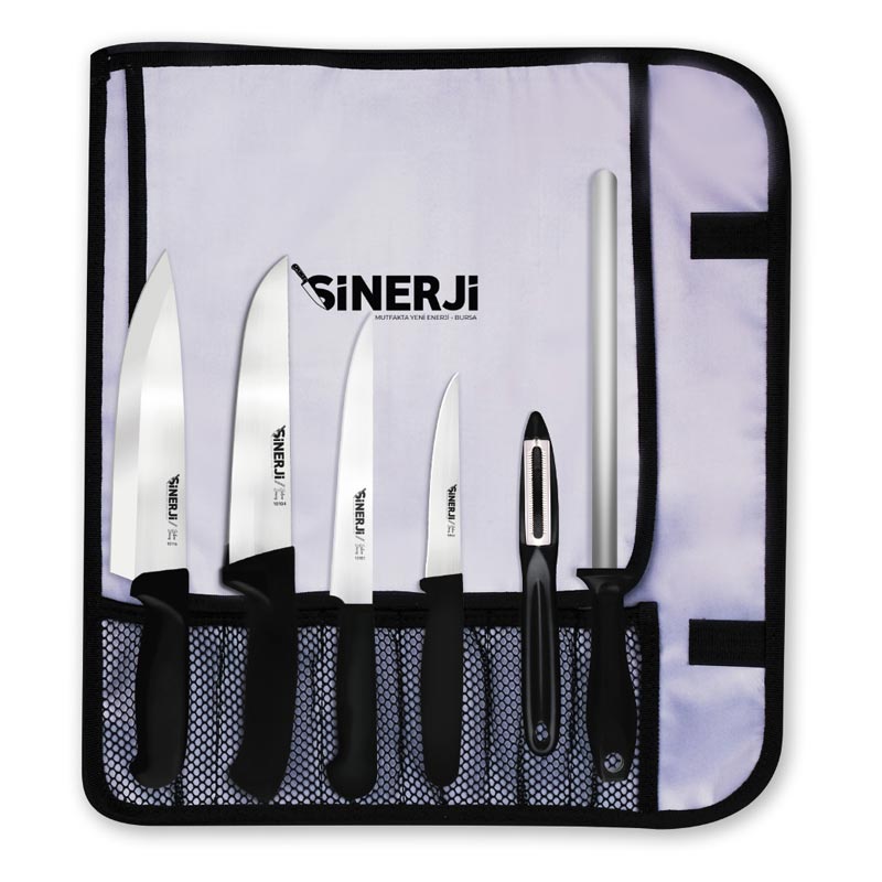 Sinerji Silver Gastronomi Rulo Çantalı Bıçak Seti 6+1