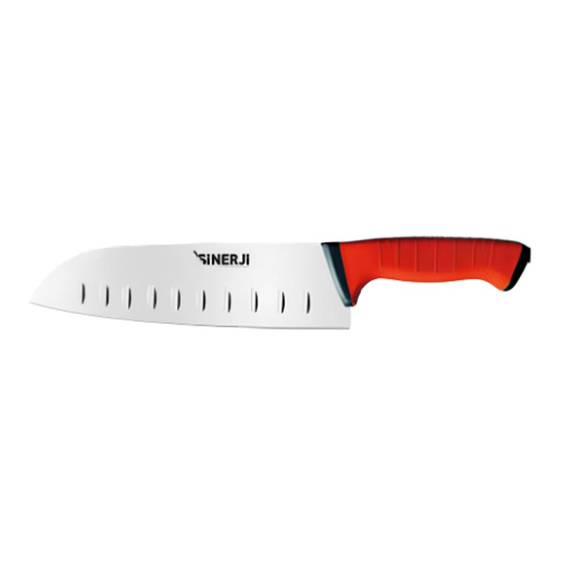 Sinerji Twix Plastik Saplı Oluklu Santoku Şef Bıçağı, 18 cm, Kırmızı
