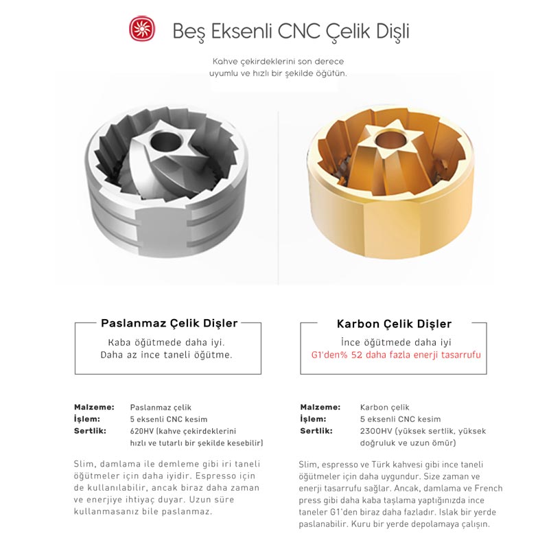 - CNC entegre kesim, daha hassas rulman sabitleme, daha düzgün öğütülmüş kahve