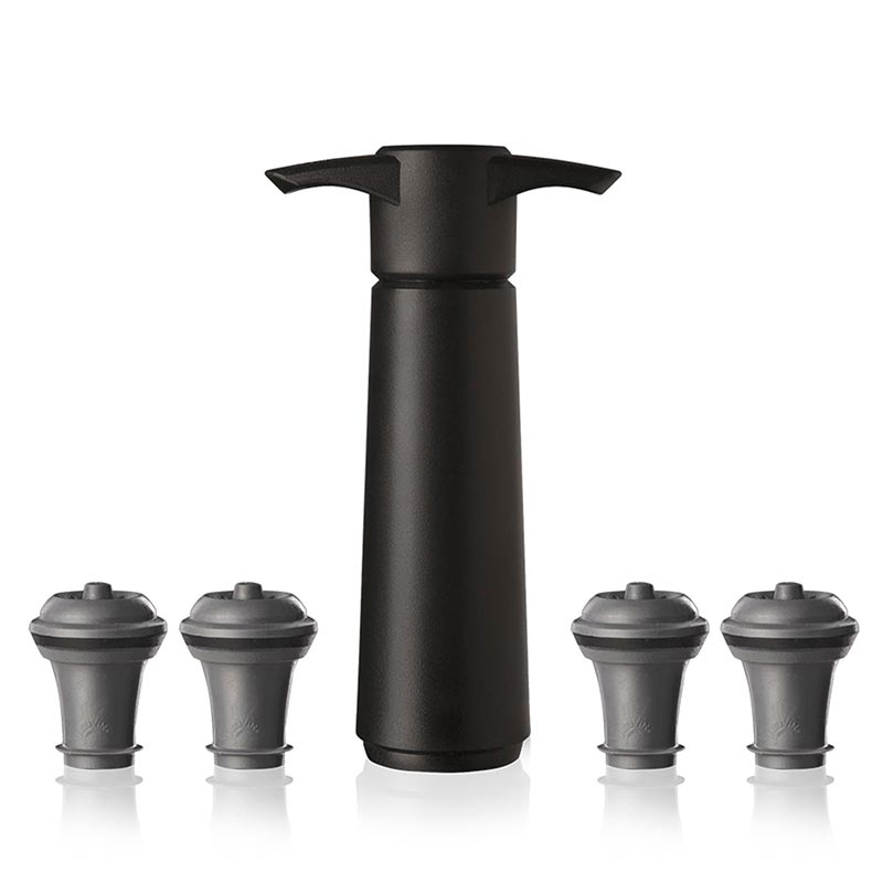 Vacu Vin Şarap Vakum Seti, Siyah (1 Pompa, 4 Şarap Tıpası), Kutulu